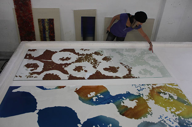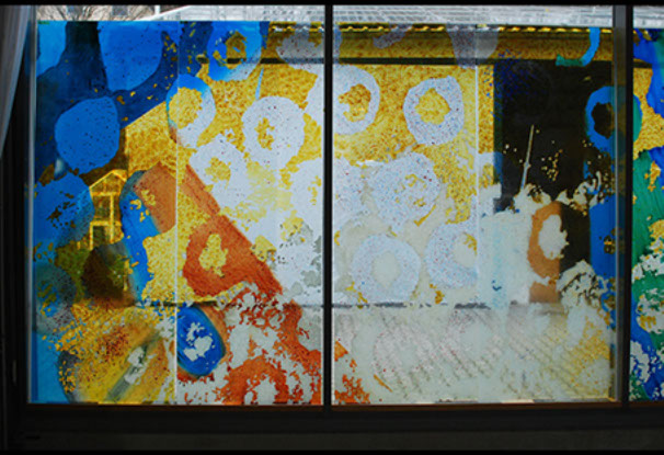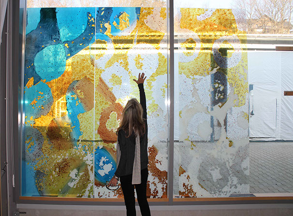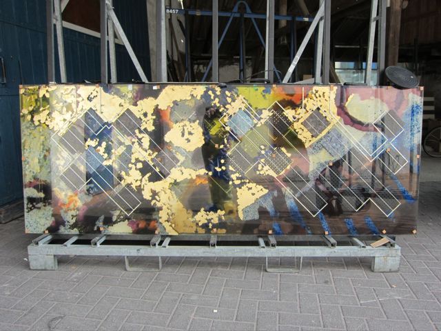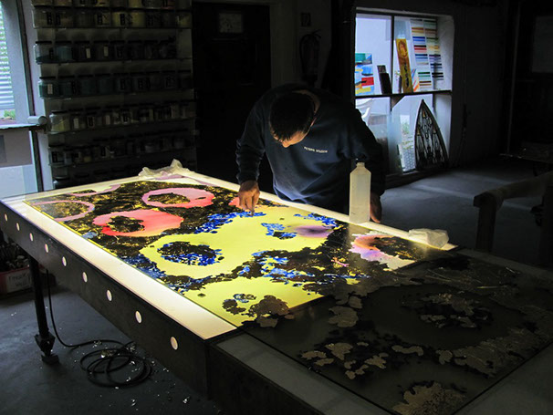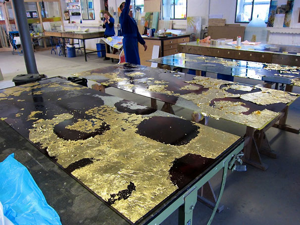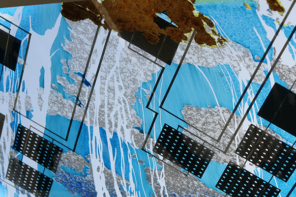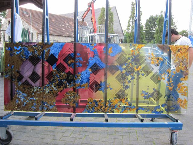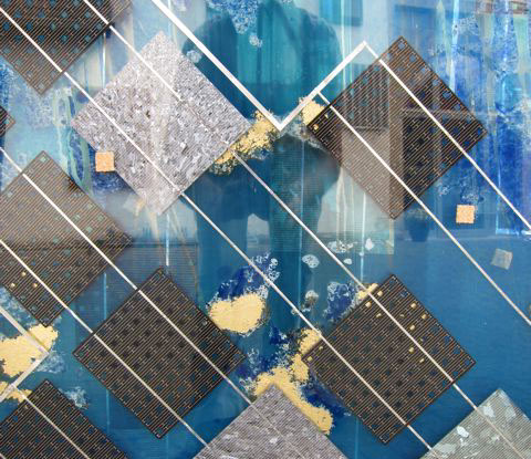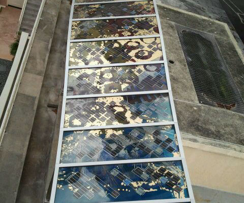 Medium: Enamel fused glass, gold leaf, photovoltaic solar cells and stainless steel