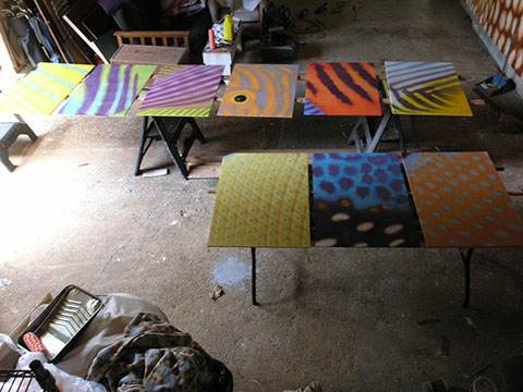 Paintings inset in architectural niches. 60 pieces of various sizes throughout the hotel.