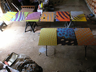 Paintings inset in architectural niches. 60 pieces of various sizes throughout the hotel.